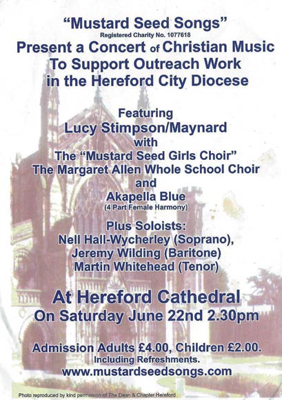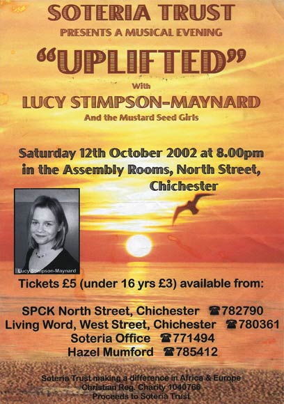 The Mustard Seed Soul Band originally began by accompanying Lucy Stimpson- Maynard, but later headlined concerts themselves such as Heart and Soul, The Season of Singing and the musical His Story. .